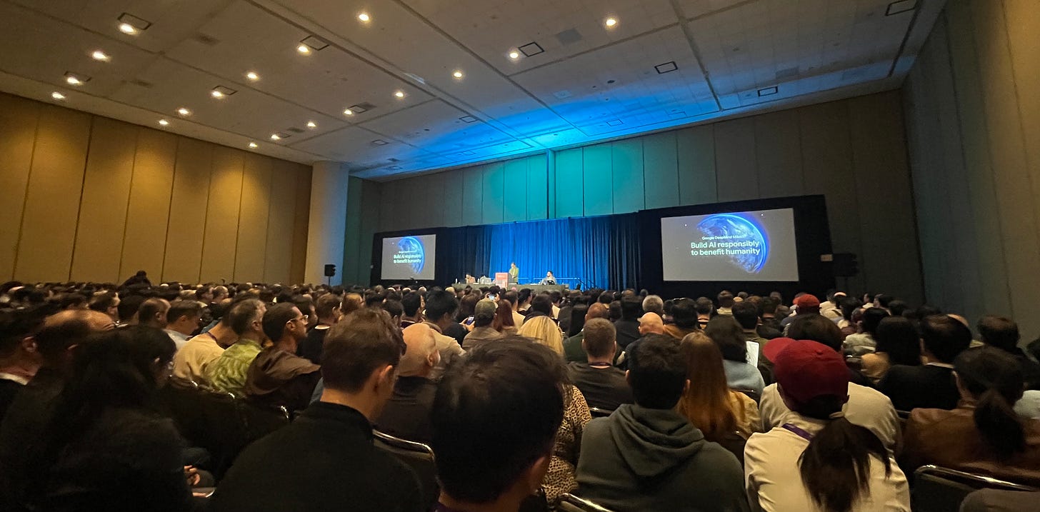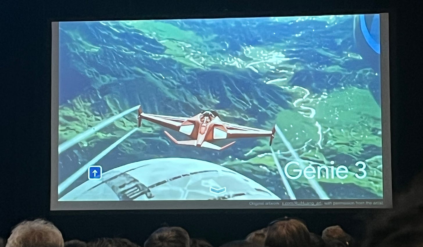 Across two days into GDCFoG (so far), I found the densest concentration of game developers at 12:45pm PT on Monday, packed into Moscone West room 2020. GDC is always full of talks, some better-attended than others. This one is standing room only, with at least 100 people turned away. The topic: The Future of Playable Worlds With Google DeepMind, presented by Google