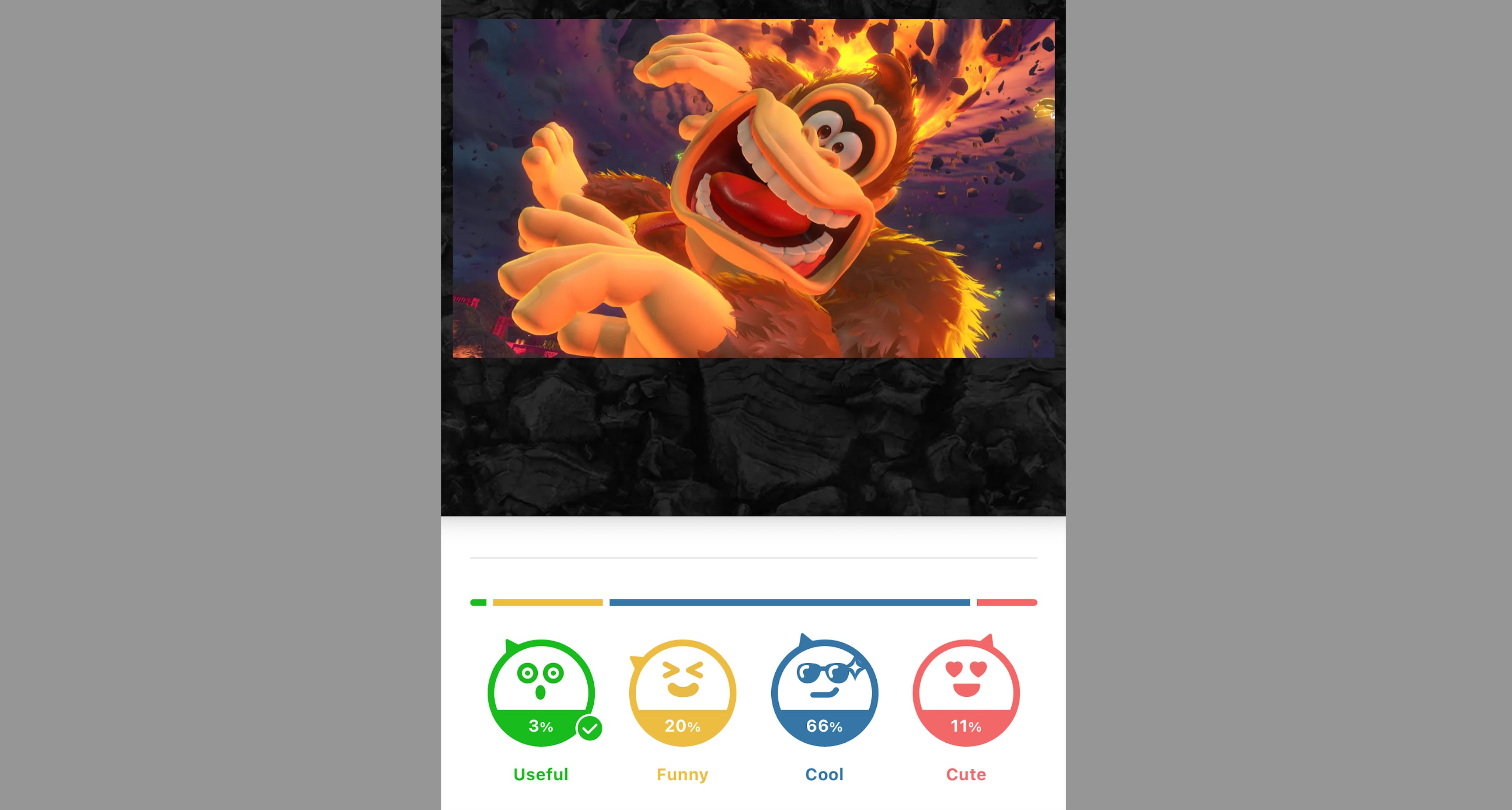 An April 6th character spotlight of Donkey Kong introduces this “mild-mannered goofball who can usually be found jamming in the jungle with friends.” That post was rated by users: