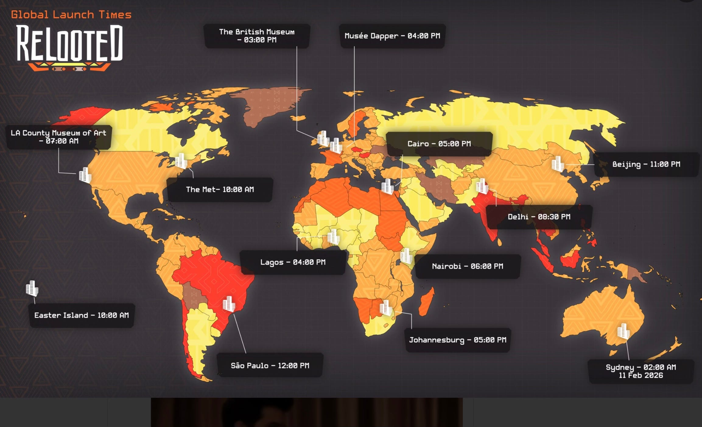 “WORLDWIDE release times for Relooted’s launch tomorrow!”