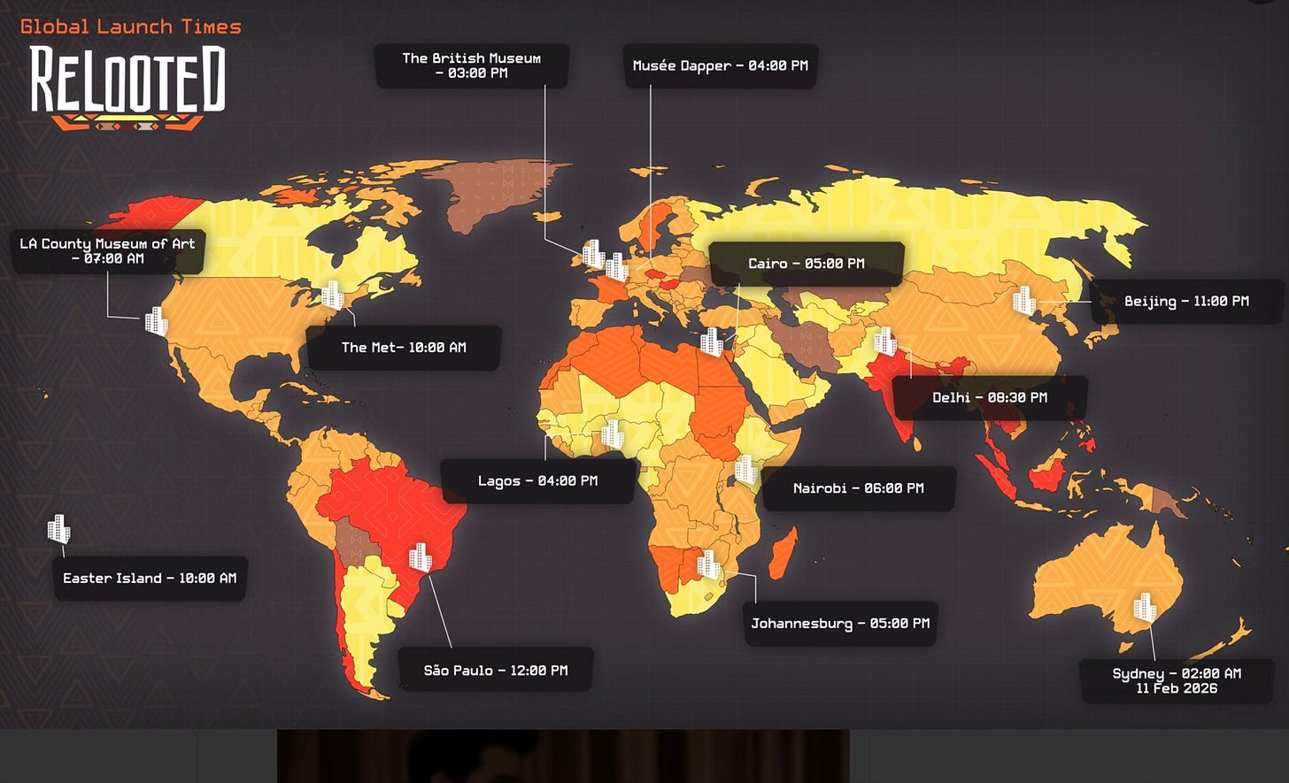 Relooted, to be clear, is available all around the world. Out today, it’s a PC/Xbox heist game about the repatriation of art and artifacts from Western museums, back to the lands of their origin. Players break into booby-trapped compounds to steal real art and artifacts that were taken from Africa and placed in western museums. (Last August, I wrote about the game and one of its real artifacts, which is currently displayed in New York City’s Metropolitan Museum of Art.