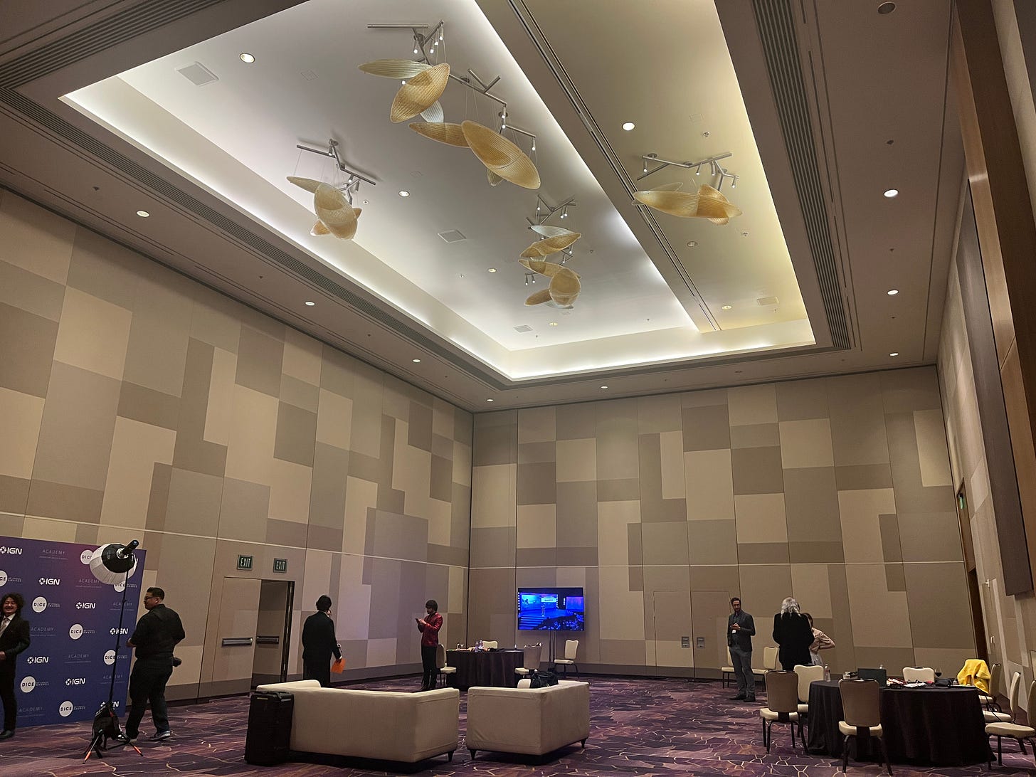 At DICE, as at the Game Developers Choice Awards each March, reporters like me can hang out in the green room and interview award-winners as they claim their trophies and walk off stage.