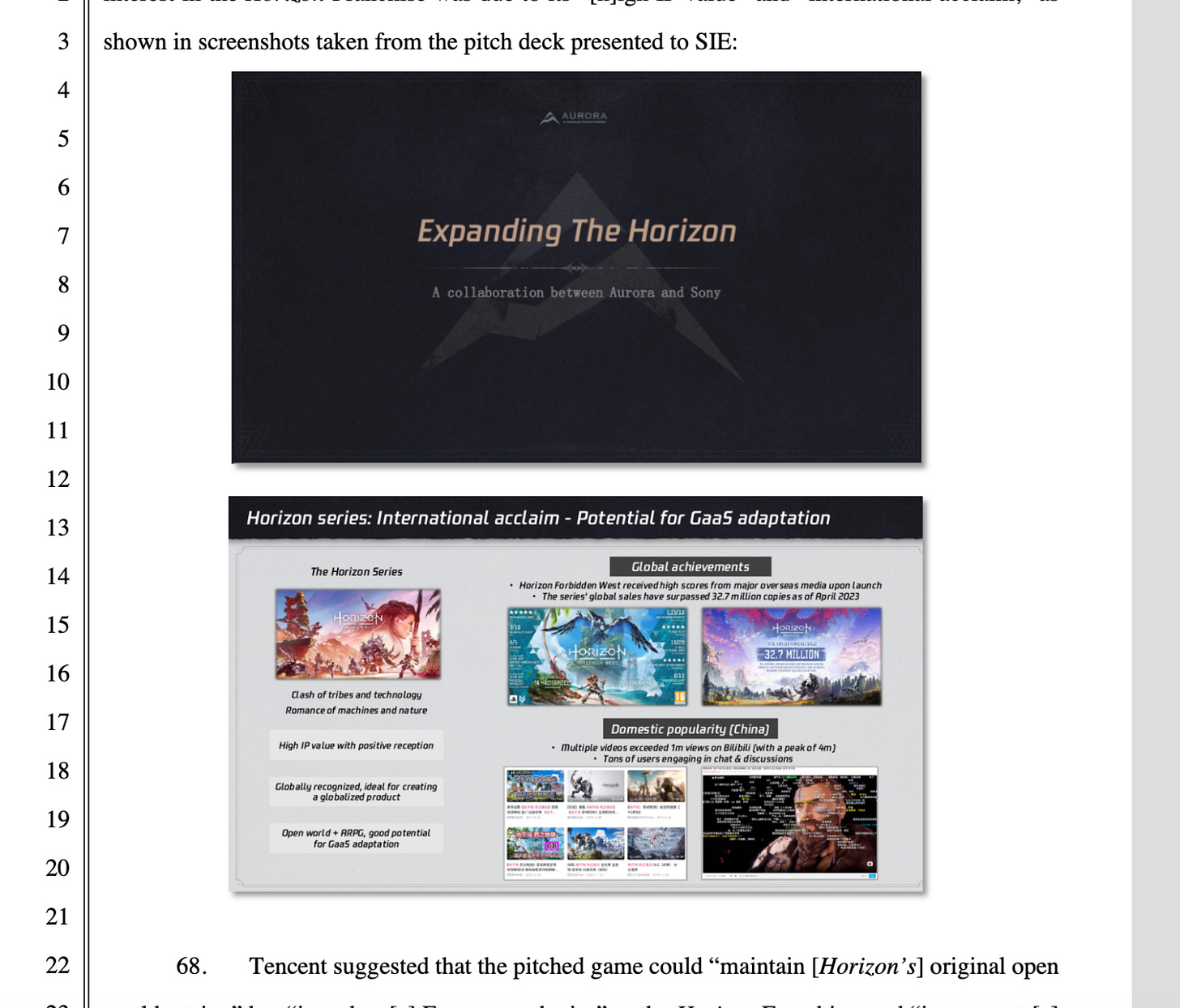 Update - 4:15pm ET: Adding a little more here from what Sony says was Tencent’s 2024 pitch document about making a Horizon game through its Aurora studios. Tencent’s pitch included the idea that a Chinese-flavored Horizon would have extra appeal…
