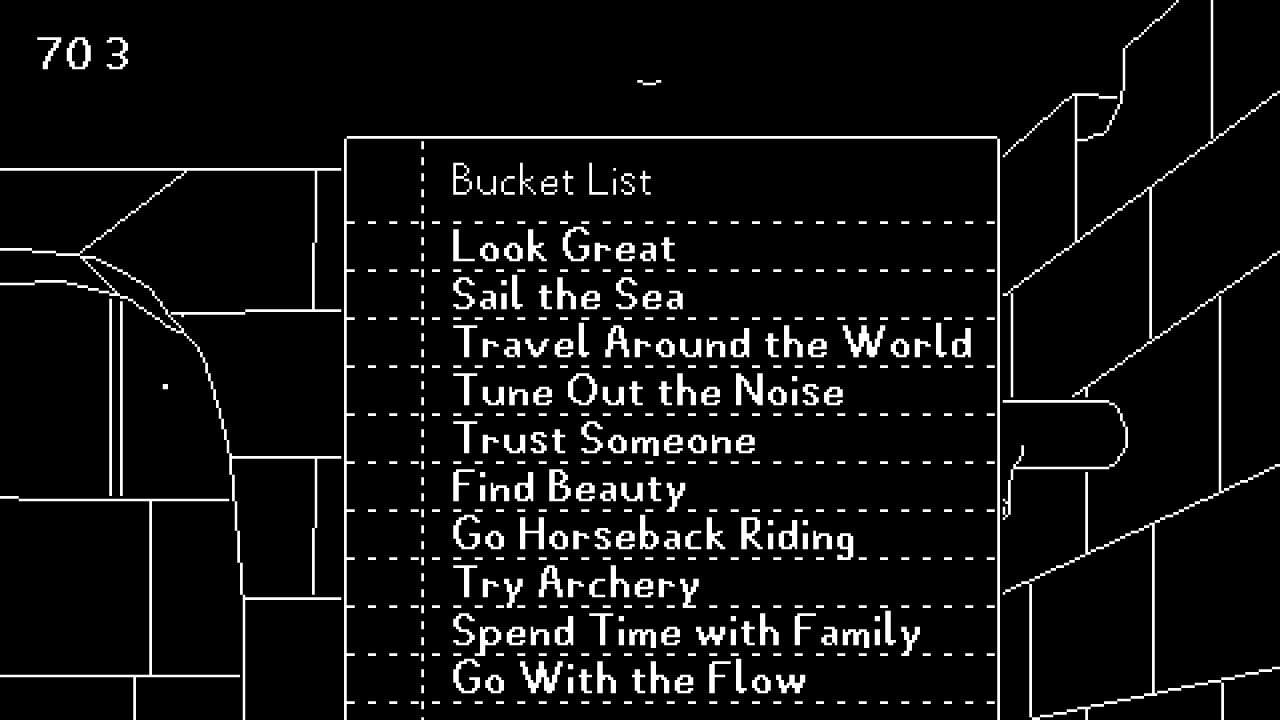 The game includes cryptic, jokey to-do lists. The puzzle of playing is figuring out what to do to cross each item off, and how to get to all of them before the timer runs out.